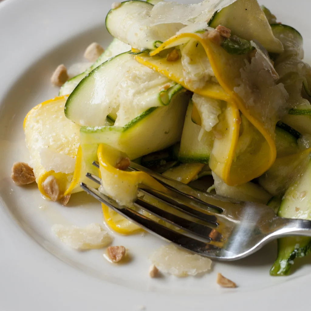 2. Shave summer squash lengthwise on a mandolin 1/16th inch thick. The squash should be thin enough to easily fold but thick enough to hold its shape.